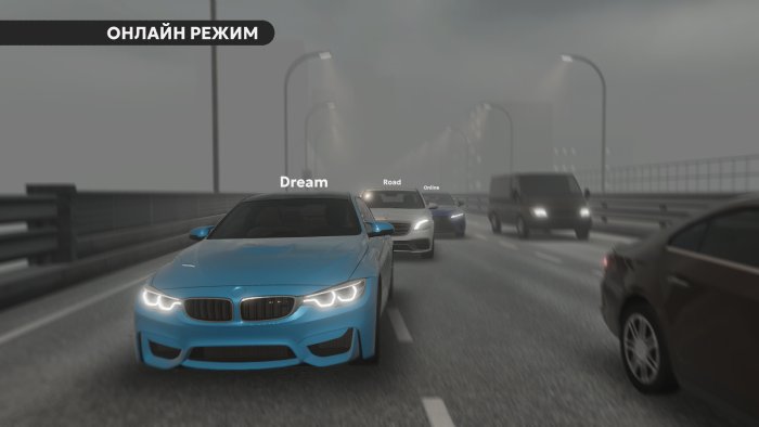 Виртуальный мир Dream Road проработан до мелочей. Вы будете гонять по узким городским улочкам, широким автострадам, пустынным трассам и даже по бездорожью. Погода в игре не просто красивая картинка — она по-настоящему влияет на геймплей. Асфальт становится скользким под дождем, в тумане видимость падает до минимума, а закатное солнце может ослепить в самый неподходящий момент.